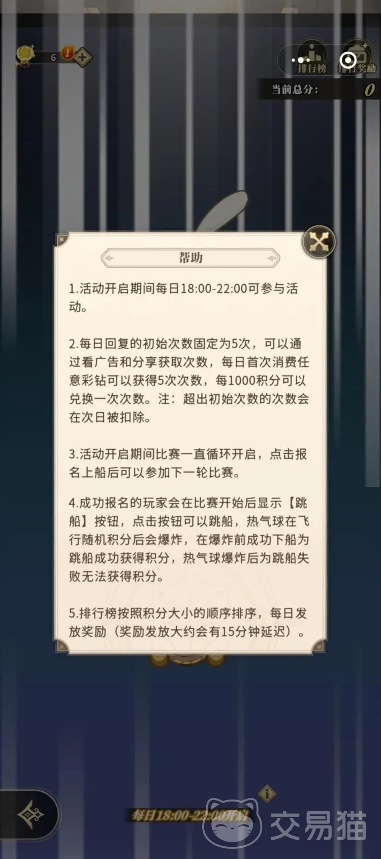 活动开启后,玩家将登上热气球并开始升空。飞行过程中,气球持续累积积分值;当积分达到临界阈值时,气球将自动爆炸。此时若玩家尚未跳离,则本次挑战失败,无法获得任何积分奖励。成功操作的关键在于精准判断跳船时机——必须在爆炸前点击“跳船”按钮,方能安全落地并结算当次得分。