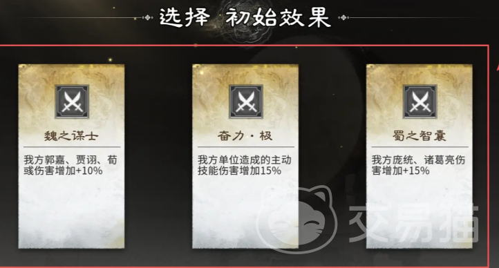在初始效果选取阶段,推荐优先锁定“奋力极”——该效果可使全体主动技能伤害提升15%,适配所有阵容类型,泛用性强且输出加成稳定。另一高性价比选项为“巧取豪夺武”,生效后使我方武力值最高的武将强制掠夺敌方20点武力,开局即可建立属性压制优势,显著提升容错空间。阵容构建方面,前排坦系与后排输出的黄金配比仍是核心逻辑:典韦与许褚组合兼具生存与爆发能力。其中许褚天赋“背水一绝”可发动350%单体高额伤害,并在击杀目标后自动选取新敌人继续血战,形成持续压制链。