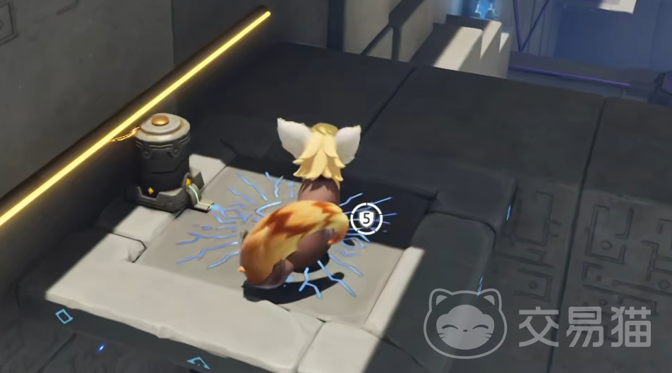 门开启后进入下一区域,此时需派遣队伍中具备电属性的伊莫角色靠近**激活装置。保持其处于有效作用范围内,装置启动后会自动延伸出可移动平台。待平台平稳抵达面前时,及时跳跃登台。