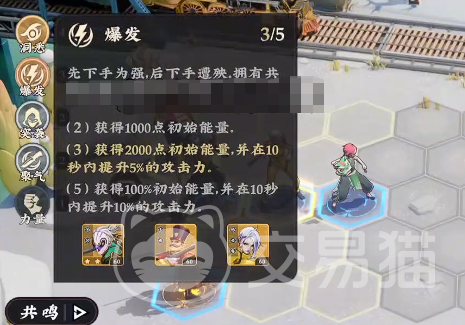 【爆发流派】聚焦能量资源与输出节奏调控。初始即提供1000点基础能量,随羁绊等级提升逐步增强:2级达2000点,满级时实现100%初始能量充能。此外,在角色等级达到10级后激活连击增益;满级状态下,还可额外提升10%攻击力。该流派专为高技能耗蓝、依赖瞬发大招的输出角色设计。