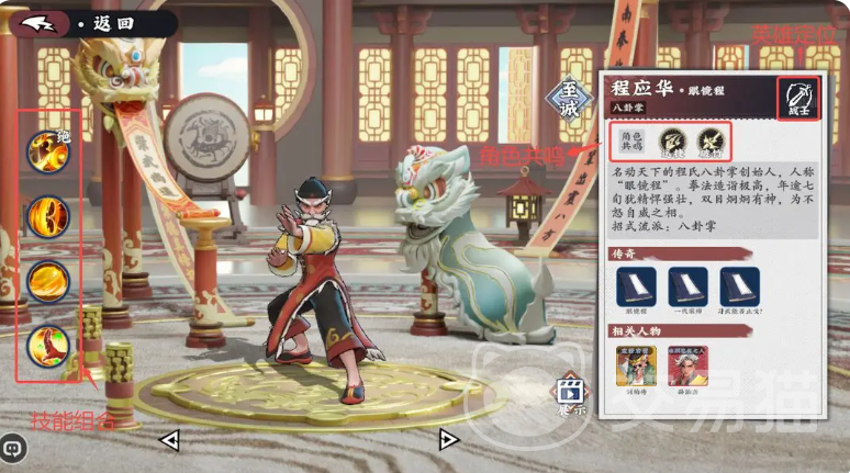 第二位推荐角色是战士型输出程应华。他以掌法体系构建战斗逻辑,标志性技能“八卦掌”赋予其多维增益潜力。当激活“迅捷”羁绊时,攻速显著提升;触发“破竹”羁绊后,额外附加百分比攻击伤害。虽然其终结技单段倍率为43%,但拥有11次高频连击特性,在精准把握输出窗口时,能形成压制性爆发。此外,命中目标可触发真实伤害加成,并基于此获得32%生命值回复,使其兼具持续作战与生存韧性,适合作为中后期战场核心战士使用。