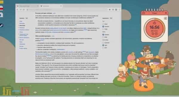 在舒适的虚拟工作空间与朋友或陌生人搭伴工作。以全屏模式、侧边模式或是透明贴纸模式游玩。
