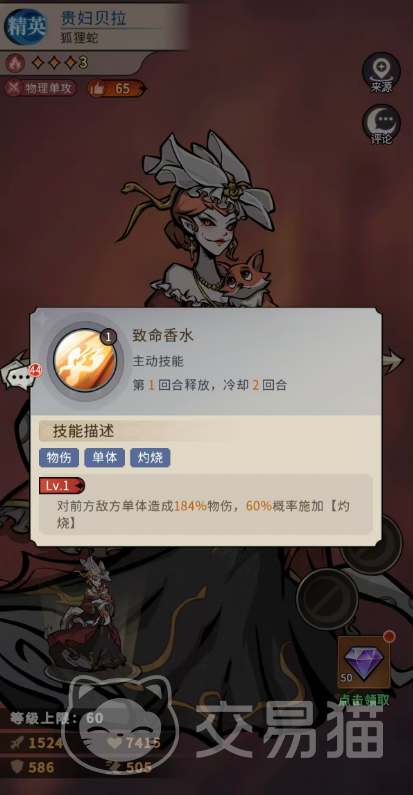 从队伍适配性来看,贵妇贝拉天然契合物理输出体系。前期关卡敌人机制简单、抗性单一,其主动技能“致命香水”所附带的单体高倍率物理伤害(184%物伤)与灼烧施加能力(60%概率),足以应对多数挑战。尤其值得注意的是:在当前火系角色中,她是少数具备稳定单体灼烧触发能力的蓝卡,这一特性使其在灼烧流派成型前具有不可替代的战术功能——即作为“灼烧挂件”,为后续引爆、连锁反应等机制铺垫状态。
