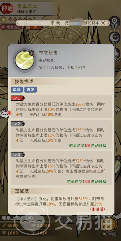 综上所述,黄金女王在爆发压血线、连续收割、标记联动等多维战术场景中均具备高度适配性。其技能成长路径清晰,数值演进严谨,机制设计兼顾强度与策略深度,是当前版本中值得重点投入资源培养的神话级蛇灵之一。