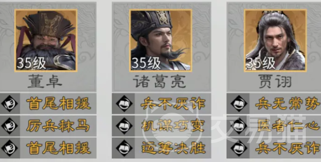 董卓:高资源投入型进攻向坦克。获取周期长、升星成本高,但机制强度突出。天赋“独断专权”兼具强控与压制:发动时夺取敌我双方全体统帅值,对敌方三人造成伤害并施加挑衅,同时削弱目标属性。当二级天赋解锁后,被挑衅单位对其发起攻击时,董卓有概率触发反击,并附加易伤效果,进一步放大队伍整体输出效率。推荐阵容为诸葛亮(功能衔接)、董卓(前排压制)、贾诩(持续伤害 干扰),前排可配置藤甲兵增强生存,后排搭配五斗米祭提升策略续航,适用于追求高爆发与高控场的进阶场景。