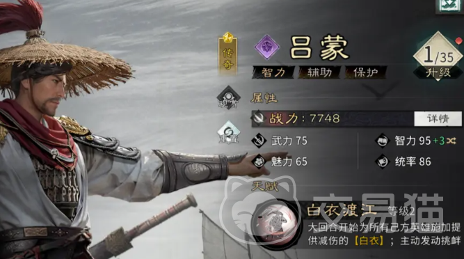 吕蒙:功能性减伤枢纽型坦克。获取途径明确,养成资源投入适中。“白衣渡江”天赋使其在每回合开始前,为全体友军叠加两层“白衣”效果,每层降低15%所受伤害,效果独立生效且全程覆盖,规避了概率类减伤(如闪避、格挡)的不稳定性。此外,其主动技能具备三目标挑衅能力,可强制转移敌方输出焦点,有效保护后排C位。实战中常与诸葛亮(群体控制 增益)组成双核驱动,前排辅以藤甲兵强化坦度,中排配置穿杨军提升压制链完整性,整体侧重持久作战与节奏掌控。