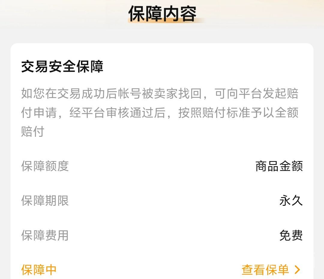 而对于流量曝光的问题根本不用担心,只要账号的定价不是太离谱,平台都会默认给卖家赠送30%的永久包赔服务,想要获得更高曝光,可以赠送全额包赔,或者是购买诚心卖服务,这样在买家拍下之后表明自己不会以任何理由中断交易,也就更容易获得平台的推荐;而在后续的验号操作中,也是由平台官方的交易员登录,不用担心一些无良买家验号的时候故意损号或者是其他行为。安全有保障,而且还是阿里巴巴灵犀互娱旗下的应用,业内唯一赠送全场包赔,不管出号买号都很值得信赖。