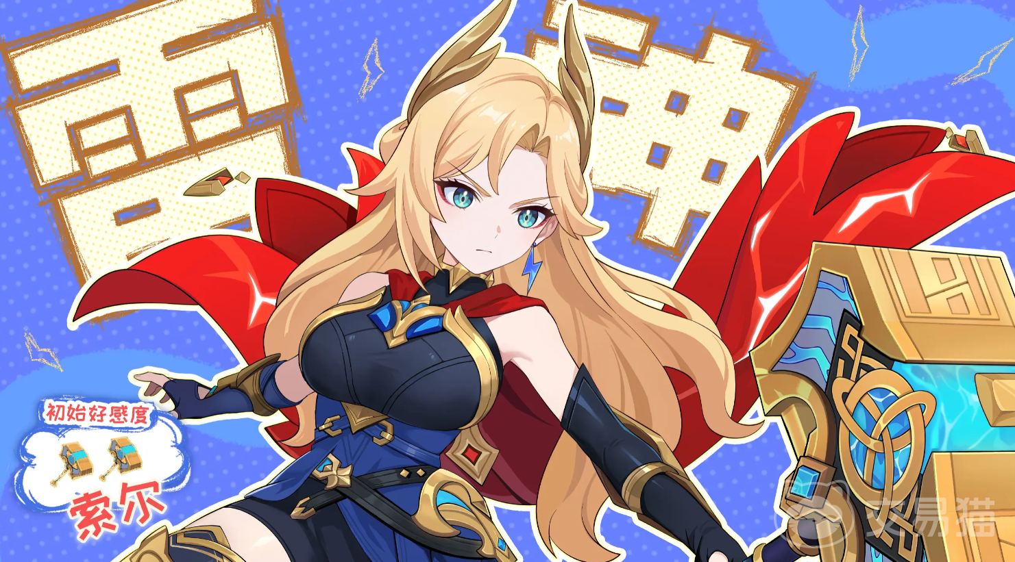 被动技能“元素恩典”强化团队协同能力:当任意队友触发元素反应时,索尔将为其随机施加一种祝福类增益效果;当索尔自身同时拥有士气与斗志时,将激活恩赐状态;在此状态下,她可释放雷光技——对面前较大圆形范围内的敌人连续锤击两次,每次造成360%魔法伤害,并在命中时为每个目标附加2次感电效果。