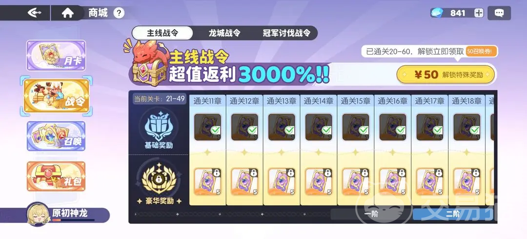 普通战令为性价比较高的周期性投入选项。除稳定钻石返还外,还提供号角等战力加成道具及抽卡资源,整体资源结构均衡,适合希望兼顾发育节奏与战力成长的玩家。