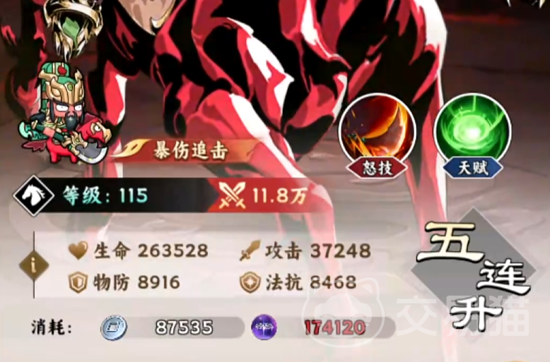 基础战斗模型显示,关羽具备显著的群体压制能力:其怒气技能可对敌方一整列单位造成高额伤害。随着技能等级提升,该技能额外赋予自身12%暴击率加成;当目标当前生命值低于25%时,其暴击伤害进一步提升30%,形成高效的残血收割机制。晋升至五星后,暴击率再 15%;若主动技能命中时触发暴击,则有概率发动一次追加攻击,强化持续输出节奏。