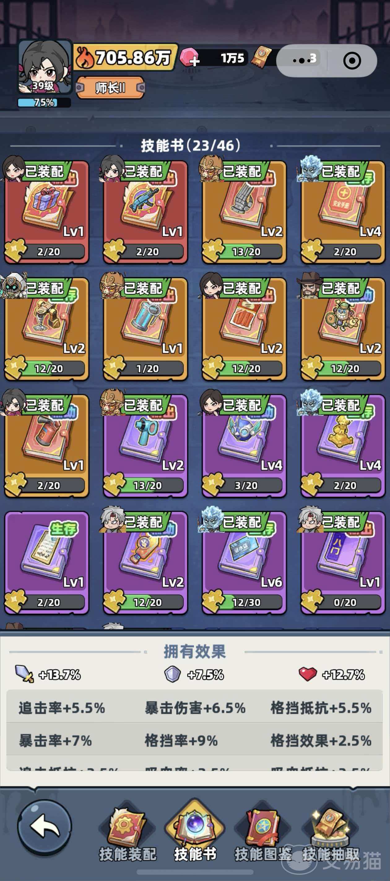 技能书系统是战力跃迁的关键支点。不同定位角色需匹配差异化增益:前排坦克强烈建议装配《龟壳防御之艺术》,该生存向金色技能书可大幅提升承伤能力与抗打断稳定性;辅助类角色首选《肾上腺素学》,提供12%攻击速度加成,是赛博剑圣等速攻流角色的核心输出增幅手段;若暂未获取该书,《八门尽开》亦为优质替代方案,具备可观的全队增益效果。此外,针对特定Boss机制,还可选用《烧成灰使者》《潜水学》《小象吹风书》等专项技能书,实现机制克制与伤害转化效率优化。