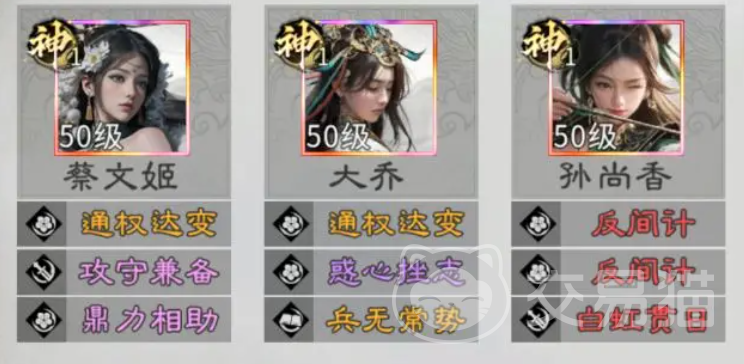推荐构建“孙尚香追击体系”,以她为唯一主C,围绕其天赋机制设计协同阵容。该体系强调三点:高频追击触发、稳定负面状态施加、以及持续暴击率叠加。其中,大乔与蔡文姬构成双辅助核心——大乔提供眩晕与减防效果,蔡文姬赋予免控、回怒与增伤增暴buff,二者配合可大幅延长孙尚香的有效输出窗口,并提升其每次追击的实际伤害转化率。该组合泛用性极强,适用于PVE副本攻坚、竞技场对战及跨服演武等多种场景。
