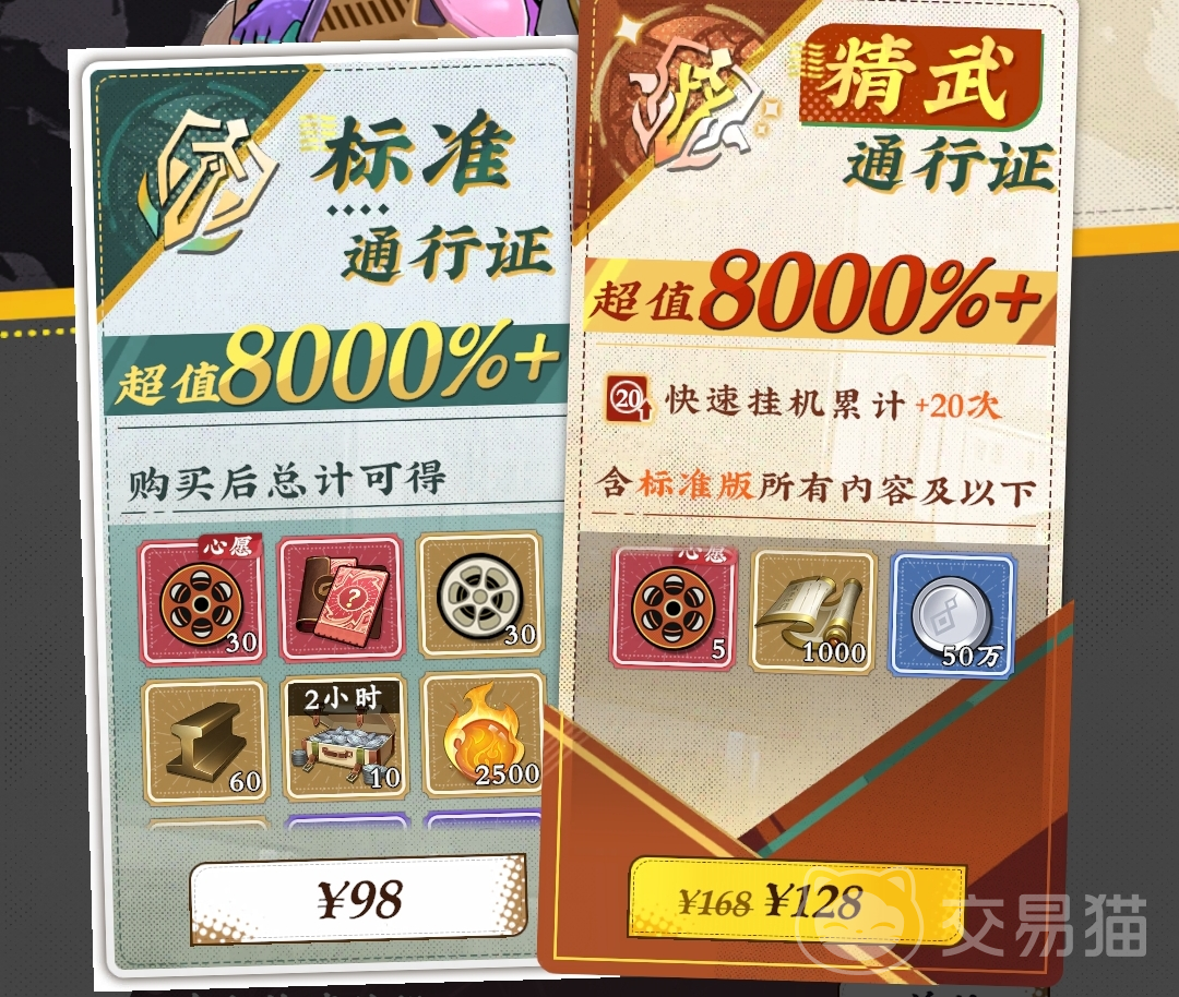 装备通行证售价98元,专注提供各类装备强化所需材料,适用于中后期战力深度打磨阶段。