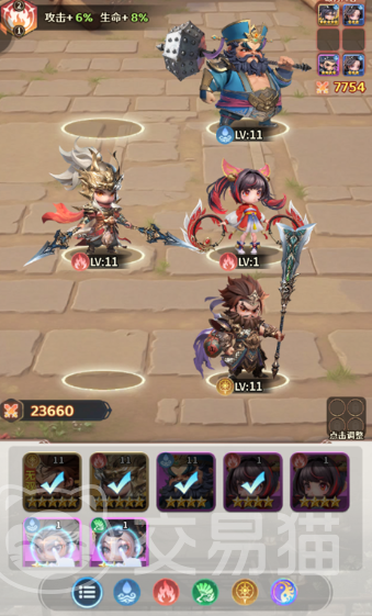 角色成长体系采用双轨驱动模式:等级提升与星级进阶并行。每升一级可领取领悟宝珠,用于强化全队共通属性,如生命上限、攻击强度、暴击率等;主角等级提升后,其基础属性加成将同步辐射至所有已上阵武将,实现“一人强、全员强”的协同效应。当主角达到指定等级后,可消耗进阶石解锁更高阶技能效果。升星则需通过定向任务链完成,每次升星均带来固定数值增幅,涵盖攻击力、防御力、技能冷却缩减等关键维度,确保战力成长路径清晰可控。