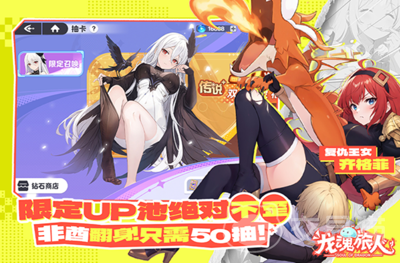 抽卡系统内置友好保底规则:累计50次抽取必得当期限定角色,且不出现“歪卡”现象。相较行业常见的一百抽甚至更高保底线,《龙魂旅人》显著降低了非付费用户的获取成本。通过日常任务与离线挂机收益,玩家平均每周可积攒一次十连抽资源,长期积累足以组建理想阵容。全角色划分为六大职业体系,各具功能定位,在搭配时需兼顾前排承伤、后排输出、辅助增益等基础逻辑,策略深度适中,上手无门槛但具备延展空间。