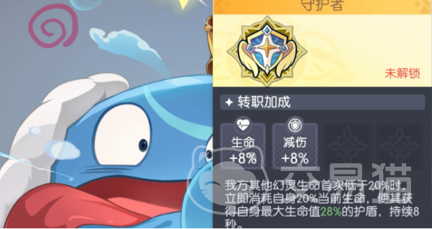 守护者:该转职具备高度泛用性,尤其适配以保护后排为首要职能的坦克角色,如雅典娜、奥伯隆妮等。转职后可提升8%最大生命值与8%减伤率;当己方任意幻灵首次生命值跌至20%以下时,自身将消耗20%当前生命值,并生成相当于28%最大生命值的护盾。此机制赋予其关键救场能力——在后排输出濒临被秒杀的瞬间触发防护,显著提升脆皮射手或高爆发法师阵容的稳定性与持续作战能力。