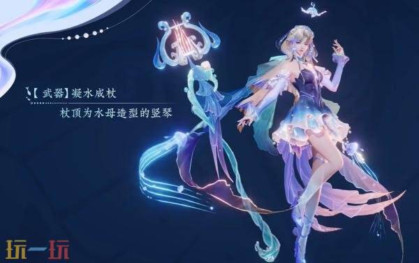 武器设计:法杖由凝水成冰的晶体构成,杖顶为水母造型的竖琴;荧光曲线编织成琴弦,轻拨即可奏响悠扬的深海乐章~