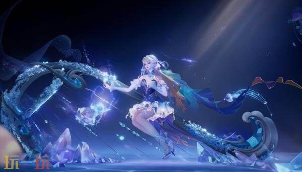 在冰封的深渊中,昭君将手中的竖琴法杖轻轻抛向空中。