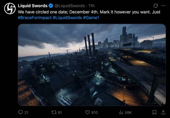 预告内容简短但相当吸引眼球,当中写道:「我们已经圈定了一个日期:12 月4 日。随你如何标记它。」相关消息迅速在玩家社群引起关注,不少人期待这支由业界资深团队打造的新作终于现身。