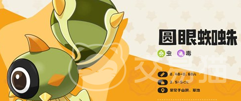 圆眼蜘蛛属虫系精灵,幼体阶段以青草为食。其天然伪装能力突出,在野外环境中极难被察觉。虽不具高爆发特性,但生存韧性与战术隐蔽性表现优异,适配潜行流或控制型队伍构建。