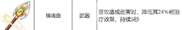 镇魂曲具备战术克制属性,普攻命中后施加“治疗抑制”效果,使目标3秒内受到的治疗量降低24%。该机制在对抗携带治疗幻灵或拥有自疗技能的敌方阵容时,可实质性削弱其续航能力,属于PVP及特定Boss战的关键对策装。