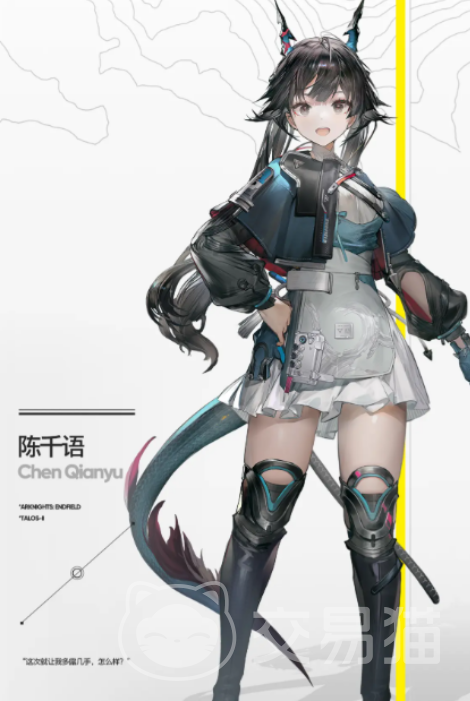 陈千语为特勤序列干员,真龙后裔血脉赋予其远超常人的体能阈值与战术直觉。自幼接受系统化武艺与战术训练,身心素质全面领先同龄人。其终极技能首段击飞目标并施加破韧状态,随后发动连续八次斩击,全程聚焦单一敌方单位,兼顾控制链构建与持续物理压制。