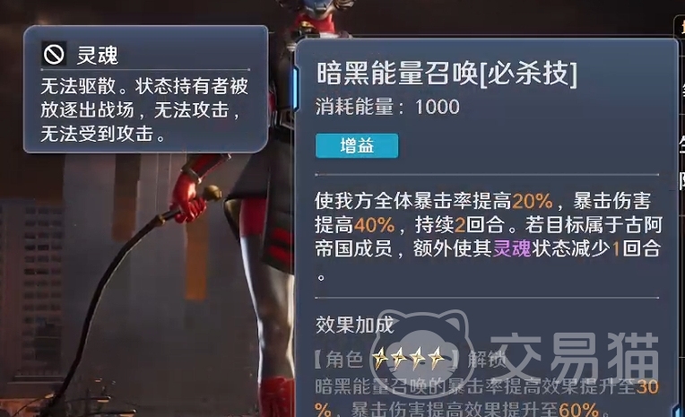 必杀技“暗黑能量召唤”是其战术价值的集中体现:释放后,全体友方单位获得20%暴击率与40%暴击伤害提升。更关键的是,若当前有处于灵魂状态的古阿帝国角色,该技能可使其灵魂状态持续时间减少一回合,大幅缩短复活冷却,强化整体节奏控制能力。凭借这一组合效果,亡灵吉娜成为泛用型辅助角色的优选之一,既可融入多体系阵容,亦可在古阿帝国专属队中与亡灵裘达、亡灵摩尔德形成深度协同,最大化阵营加成收益。
