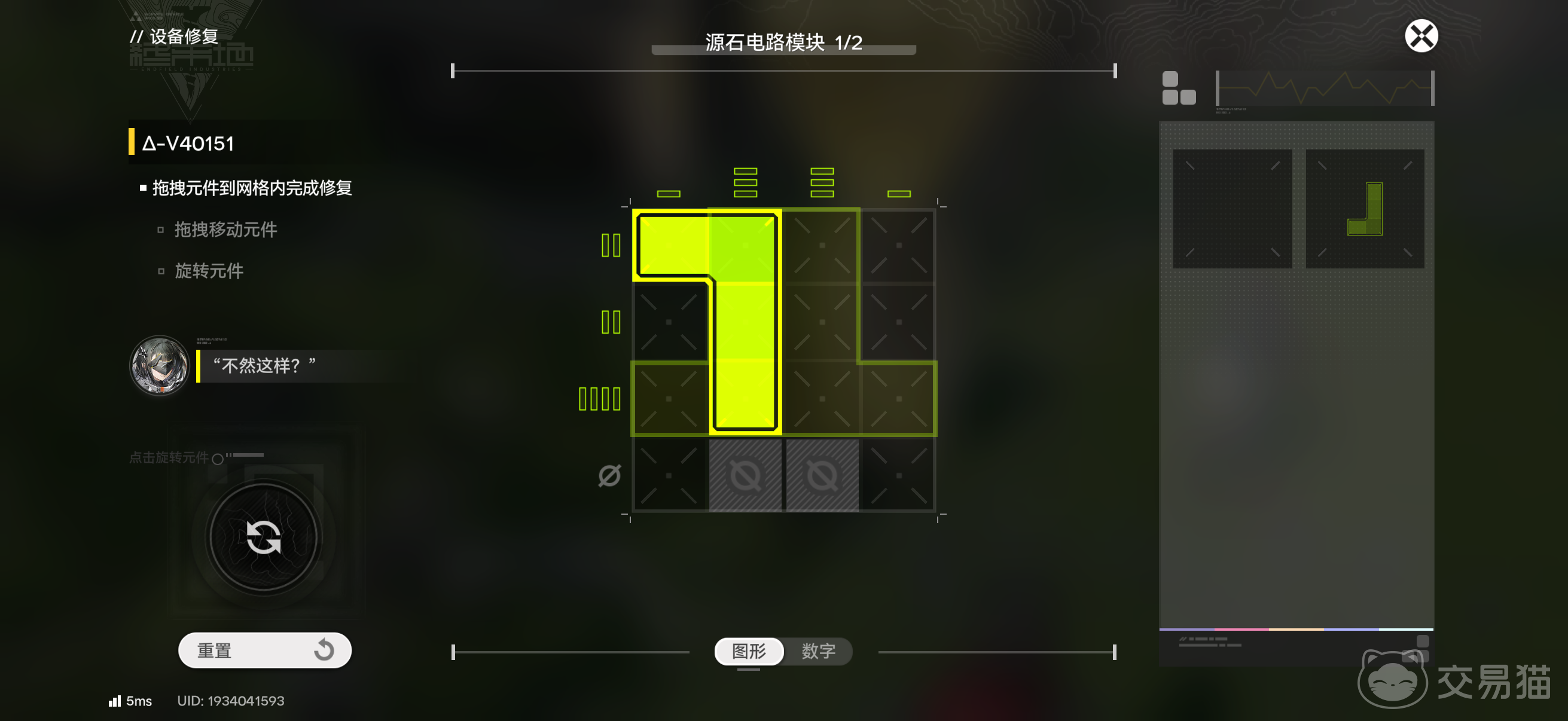 除视觉标识外,日常任务系统亦会同步推送Delta机器人救援目标,玩家可在任务追踪栏中查看实时坐标。完成定位后,需主动靠近并触发交互,进入专属修复界面。该环节采用基于网格约束的拼图解谜机制:玩家需根据横纵轴标注的电池数量需求,将预设的多边形模块精准嵌入指定区域。所有图形支持点击旋转,操作具备实时反馈。