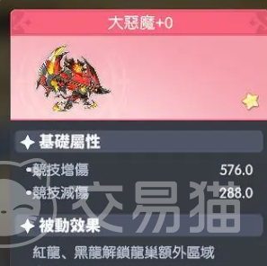 大恶魔:红队核心输出单位,主打高爆发压制。基础属性侧重进攻维度,竞技增伤为576点,竞技减伤为288点,在PVE副本攻坚与PVP对战中均能实现高额瞬时伤害。其被动技能可开启红魔与黑魔区域的额外探索权限,使玩家优先抵达高产出地图,高效获取稀有龙魂及关键养成材料,显著缩短发育周期。