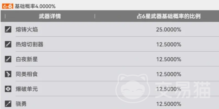 武器池设计相对友好:仅开放10连模式,单次消耗6000合成玉;六星武器基础概率约为4%。但实际使用中,4星与5星武器完全可通过武库配额在商店直接兑换——平均2500配额即可获取一件4至5星武器,而单次武器池寻访仅产出约2000配额(按6星干员计算),因此角色池240抽所获配额通常不足以覆盖一次武器池保底(80抽)。除非欧气十足,否则不建议专门投入资源抽取武器池。
