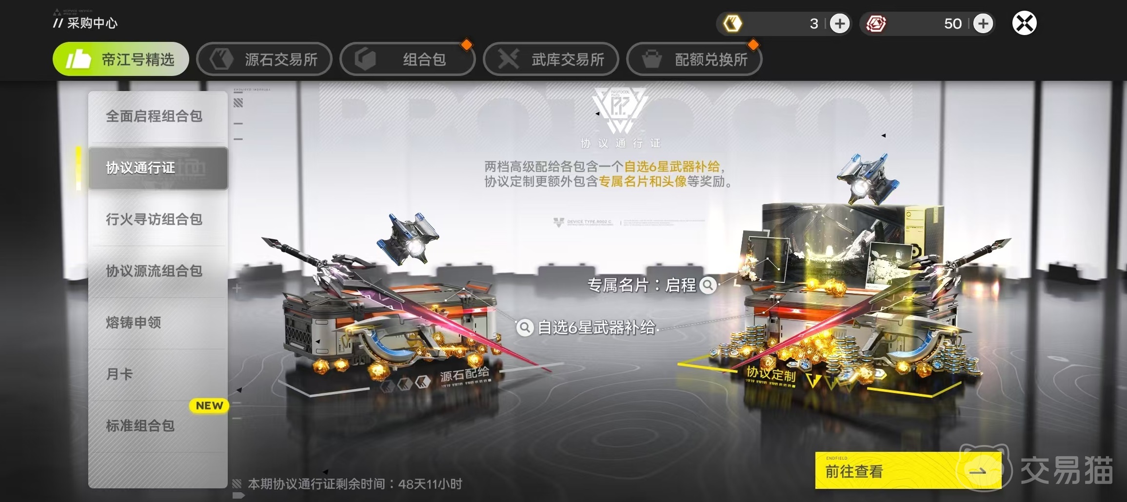 优先级最高的两项付费选择,均具备明确的资源回报率与阶段适配性。其一为30元月卡,激活后即时发放12枚源石,并解锁每日200嵌金玉及1个应急理智加强剂领取权限;30天周期内累计可得6000嵌金玉与12源石,单位价格资源转化率突出。需注意:所获理智加强剂为时效型道具,建议按需及时消耗。其二为68元通行证协议定制,购入即得20枚源石与12000通行证经验;达成20级可领取六星自选武器箱,35级解锁专属名片,全周期总计产出2400武库配额、2个协议化武器原型及16枚源石。