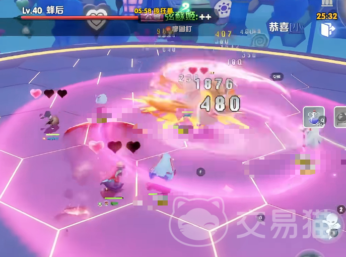 紧随其后的是全场控制技:粉红色爱心弹幕呈环状扩散,接触即触发2秒眩晕。此阶段严禁输出或使用非位移技能,所有成员需立即停止操作,优先向地图边缘横向移动规避。若已中招,应立刻使用解控类技能或等待队友协助驱散,确保不被后续AOE连锁击杀。