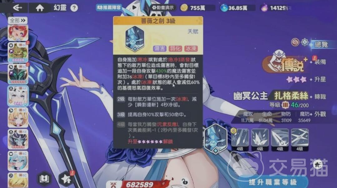 天赋技能强化了冰系体系的团队协同价值。当目标处于“寒冷”“急冷”或“蒸发”等冰属性异常状态时,幽冥公主每次普攻或技能命中均可额外附加一次魔法伤害,并附带4秒冰冻效果;单个目标在8秒内首次触发该效果时将直接进入不可行动的冻结状态,且其基础怒气恢复速度显著降低,大幅削弱敌方技能循环节奏。