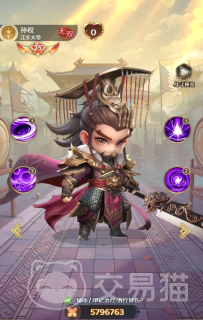 孙权:虽属无双系基础定位,但具备明确的六星成长路径。其核心机制围绕“精准治疗 动态防护”展开:主动技能可为己方生命比例最低的3名单位恢复等同于自身攻击134%的生命值,并为自己叠加1层【暗能印记】;该印记在孙权承伤时自动消耗,转而为当前血量最低的友方单位恢复50%攻击力的生命值,最多可叠加5层;此外有30%概率额外生成【庇护】,提供相当于孙权8%攻击力的护盾,形成“低血量优先响应 伤害转化防护”的双重保障体系。