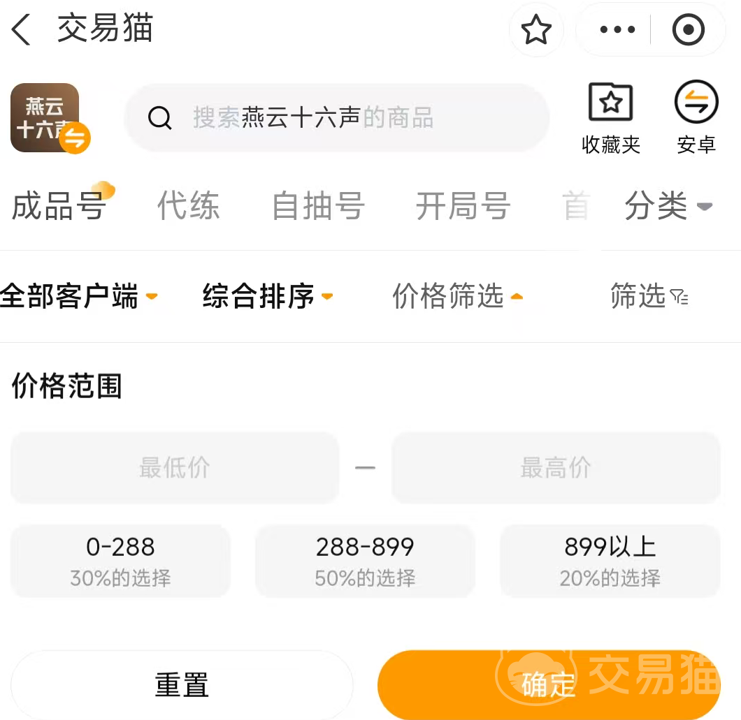有些玩家的预算比较有限,所以挑选账号的时候只能挑选价格低的账号,但是一个一个筛选起来还是挺麻烦的,那么就可以通过的价格筛选功能,可以将价格锁定在某一个区间,这样玩家们在挑选的时候就能节省不少的时间,从而快速搜索到专属账号。