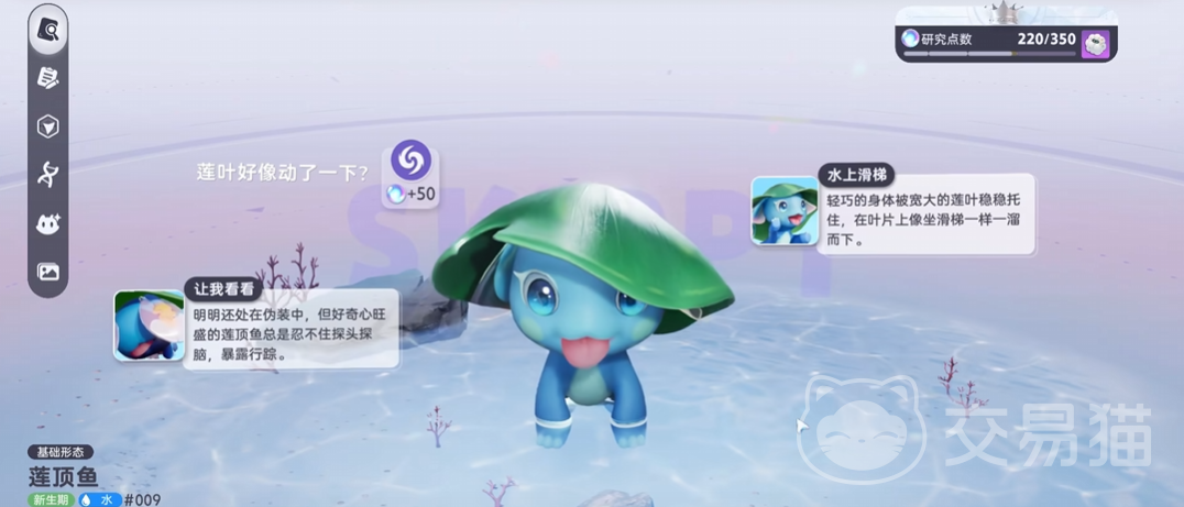 水属性治疗型伊莫,填补队伍功能性缺口。主动技能“治愈之水”可恢复全体队友生命,首次回复量为自身最大生命值的6%,随后进入持续治疗状态,每秒恢复量为释放者最大生命值的1%。该机制适配主C输出间隙,切换上场即可维持团队生存能力。进化路径为莲顶鱼→顽皮鱼(解锁2级游泳能力,提升水下移动速度)→莹冰龙(追加冰属性,扩展属性应对面)。