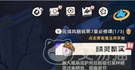 大耳帽兜果实位于地图左上角的雪山区域。该区域终年覆雪,地形辨识度高,其中一根醒目的蓝色树枝即为果实所在标记点。但需注意:果实并非直接可采集,必须满足一项硬性门槛——玩家需集齐总计60种精灵图鉴。此图鉴数量涵盖普通、稀有及部分活动精灵,须通过日常探索、副本遭遇、野外捕捉等方式持续补充,待图鉴数量达标后,方可与蓝色树枝交互并成功获取果实。