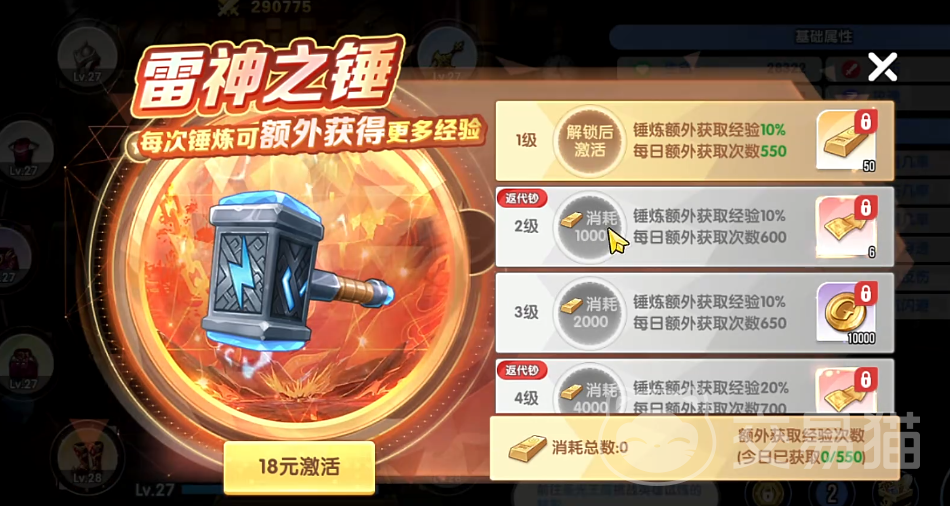 该道具定价为18元,购买后不仅即时获得道具本体,还将同步激活专属累充礼包。礼包内含多类实用资源,涵盖成长加速类、资源补给类及稀有材料等。此外,雷神之锤支持后续培养——玩家可通过消耗金砖进行升级,每次升阶均可领取对应阶段的奖励,包括但不限于锻造券、精炼石、稀有图纸等高频刚需道具。对于追求长期发育节奏的玩家而言,这一设计提升了道具的持续价值。