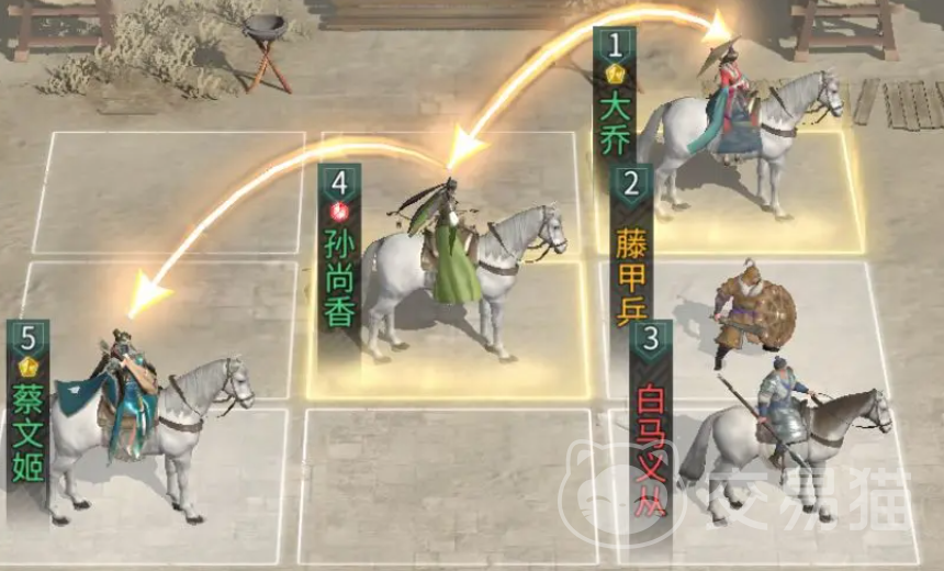 技能配置方面,大乔必带反间计,该技能可在战斗初期施加混乱状态,打乱敌方技能释放节奏,为后续战术执行争取关键先手优势;孙尚香推荐装配两面三刀,提升其多段伤害的叠加效率与目标覆盖率;蔡文姬延续辅助定位,继续使用鼎力相助强化追击协同。站位逻辑与首套一致:将主输出角色(此处为大乔或孙尚香)精准部署于蔡文姬追击格覆盖范围内,确保控制—增益—爆发三阶段无缝衔接,实现数值叠加的最大化兑现。
