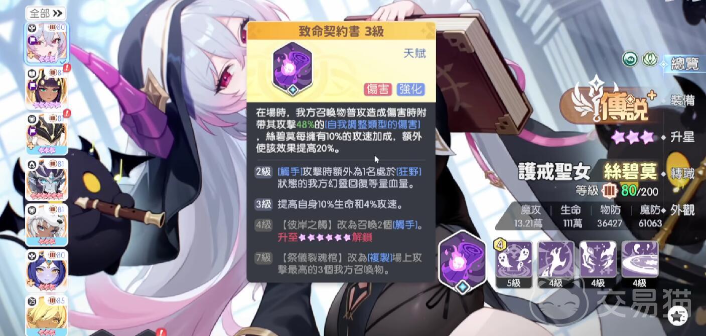 实战层面,丝碧莫每次成功召唤后,普攻将附加额外伤害;7级天赋带来的质变,使其奥义复制效率跃升,进一步放大对敌方当前生命值的打击能力。同时,其召唤出的触手类单位可继承丝碧莫大部分基础属性(含攻击、暴击、命中等),显著提升整体队伍输出下限。配合专属技能释放,还可额外提升奥义技能的基础伤害倍率,形成“召唤—复制—增伤—回血”的完整闭环。