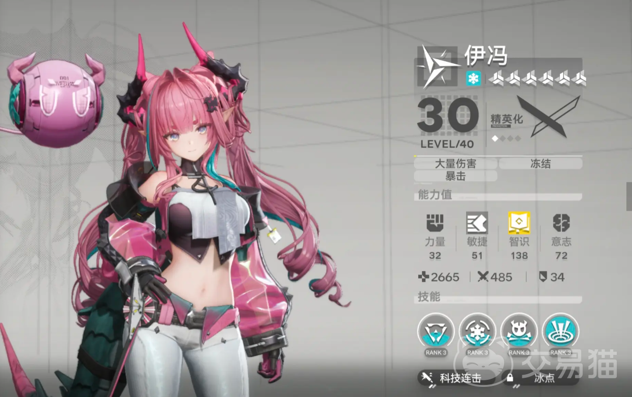 伊冯并非传统站桩输出型干员,而是典型的机制向辅助输出角色。其全部技能均围绕“冻结—破冰—协同”三重逻辑展开:普通攻击命中后可对目标施加一层冰冻状态,实现稳定硬控;若在冻结持续期间触发重击动作,则立即激活破冰效果,使本次伤害提升50%。该机制强调操作节奏与时机判断,凸显其高策略性与深度养成价值。