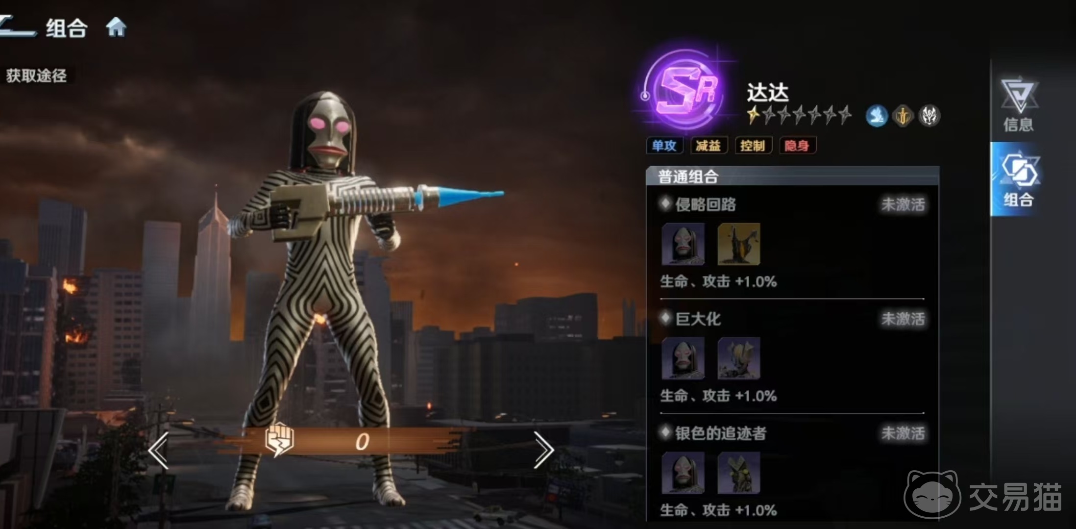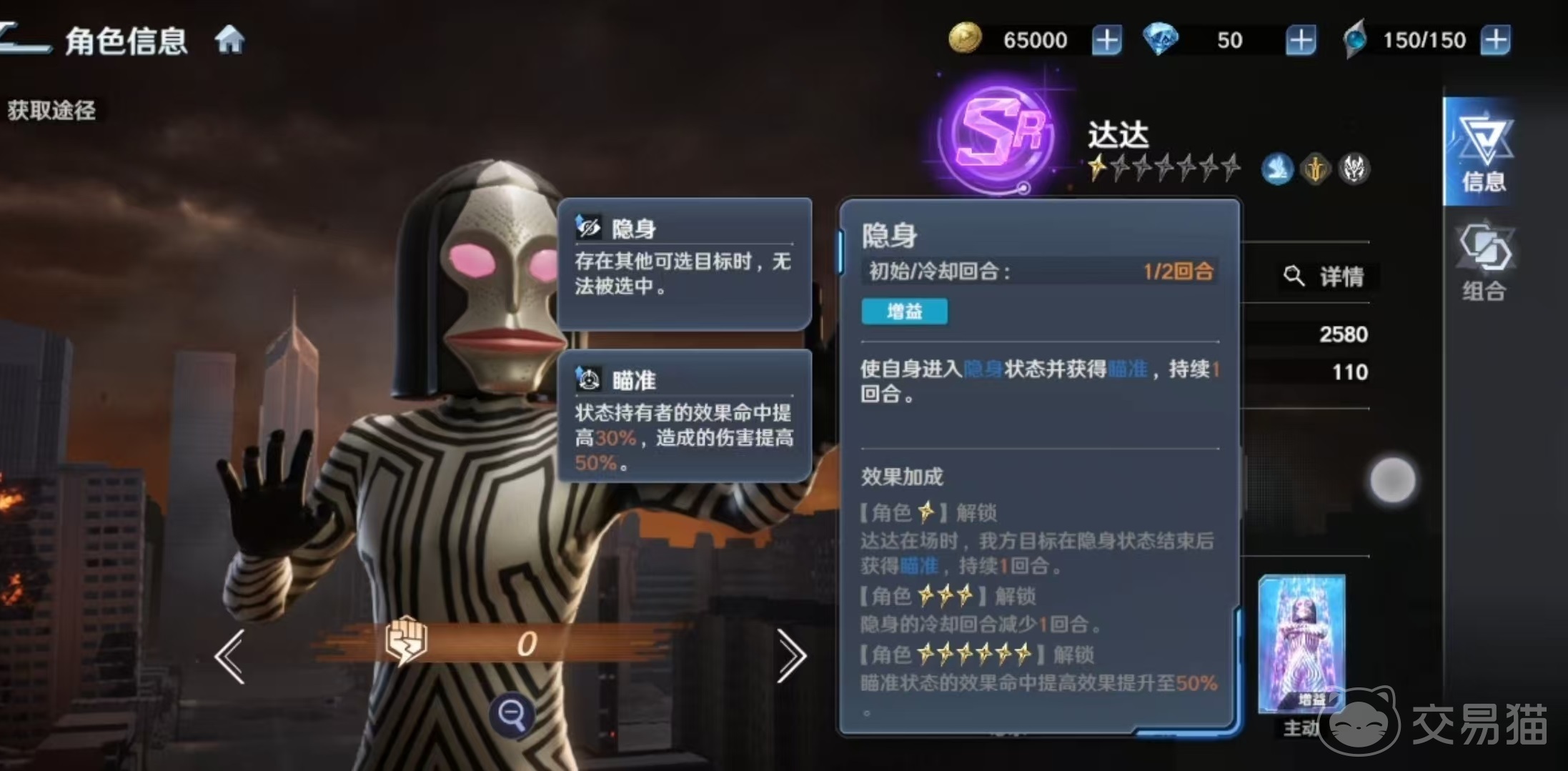 达达的核心机制围绕“隐身—瞄准—单体压制”三重逻辑构建。其被动技能【突袭】可在己方单位结束隐身状态后,赋予其“瞄准”效果:提升30%效果命中率与50%伤害输出,持续一回合。该设定使其成为隐身系阵容的关键衔接者,尤其适配强调状态链触发的战术体系。