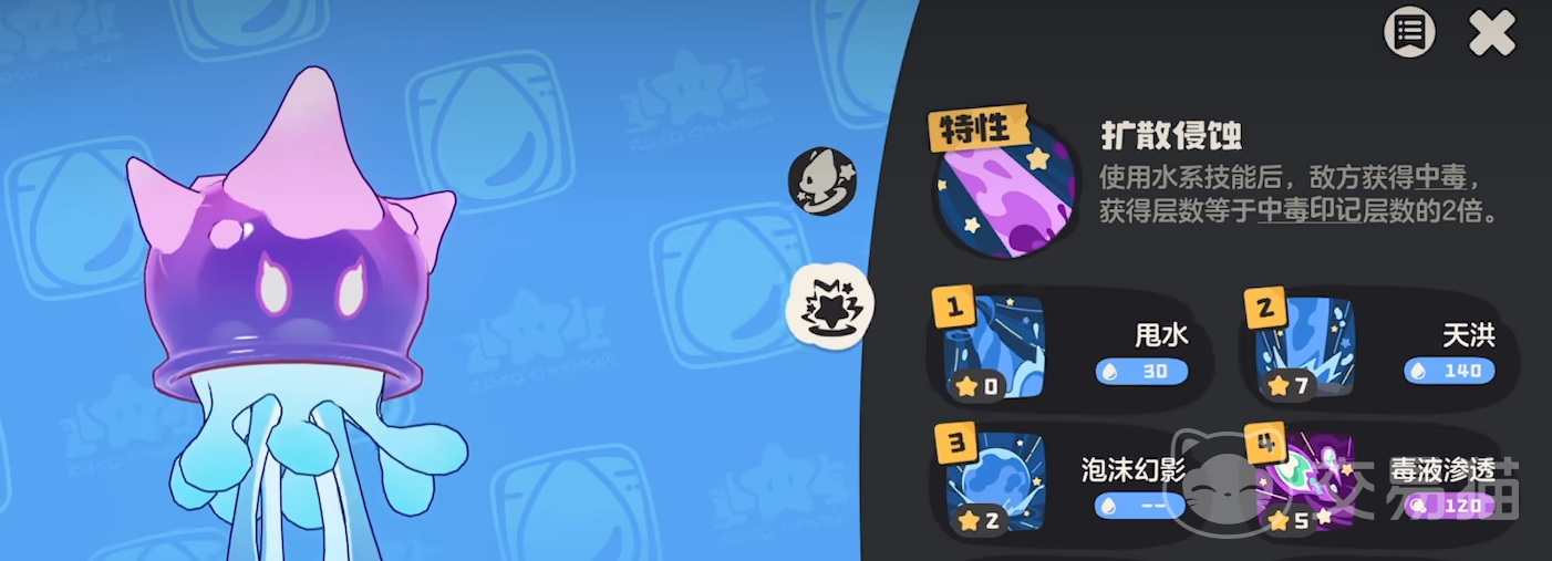 琉璃水母负责扩大中毒覆盖范围,通过技能联动进一步扩散毒印记至敌方全体目标。完成扩散后,可切换回裘卡进行印记重叠操作,最终由厉毒修萝完成爆发清场。其技能搭配可参照图示方案执行。