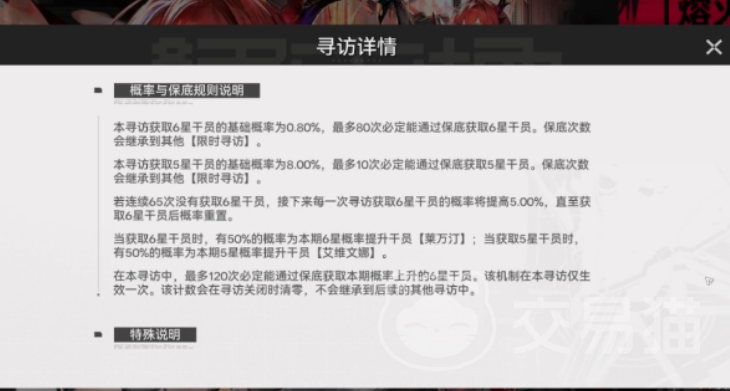 该寻访属于限时限定类型,参与前提为推进主线至指定节点——完成基础章节关卡后,系统将自动开启“熔火灼痕”入口。抽取方式支持两种:使用专属寻访凭证或通用游戏货币。其中,寻访凭证主要通过活动任务获取,建议优先消耗凭证,以保留通用货币用于其他必要支出。与常驻卡池相比,“熔火灼痕”的六星与五星干员基础出率有所上调,虽未公开具体数值,但实际抽卡反馈显示目标角色更易获得。此外,本卡池设有独立保底机制,抽卡次数不与其他寻访池共享,保底进度单独累计,有利于集中资源锁定目标干员。