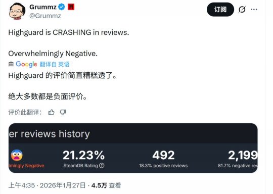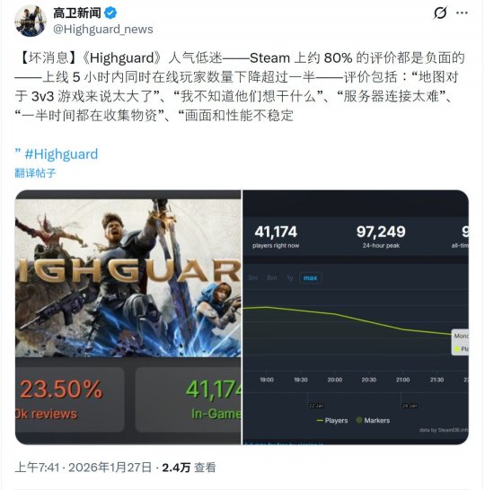 由前《泰坦陨落》开发者打造的新作《巅峰守卫》在今天正式上线Steam,但玩家评价几乎全是负面。虽然Steam同时在线玩家峰值接近10万(97249人),但玩家们却遇到了各种问题。