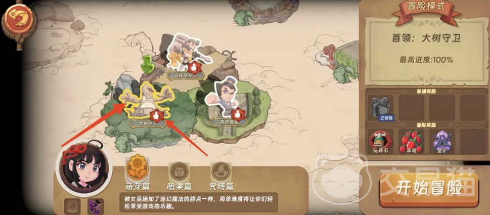 解锁流程共分四步,每一步均对应一件关键道具:第一件为“神秘的果实”。玩家需抵达“大树守卫”关卡,在场景右上区域暂停推进。此时无需与守卫交战,只需将视线移至主干右侧枝杈末端——一枚微缩果实静置于其上。靠近后点击拾取,即可直接收入物品栏。整个过程全程规避战斗,强调环境观察力。