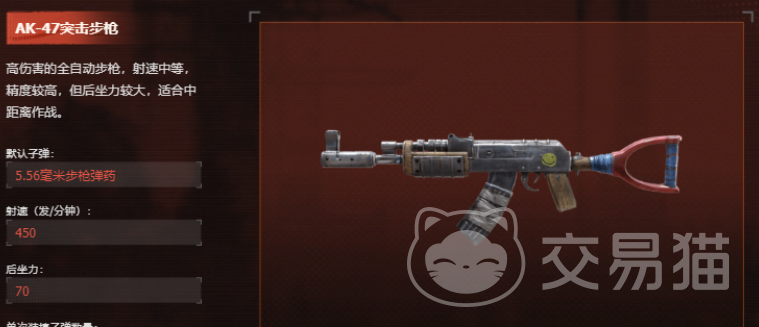 全自动步枪,理论射速450发/分钟,后坐力值为70,单弹匣载弹量30发。虽射速处于中等水平,但单发伤害与弹着密集度表现优异。中距离扫射时需注意压枪节奏,适用于需要兼顾火力密度与终结效率的复合型作战场景。