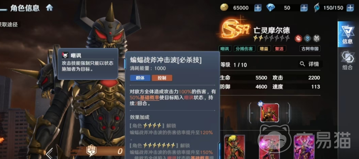 摩尔德的核心战力模型,建立在强制嘲讽与被动技“卷土重来”的双重协同之上。其必杀技“蝙蝠战斧冲击波”具备高额群体伤害,并附带概率触发目标转向自身的效果,有效分担后排输出单位所承受的集中火力。该控制机制与生存能力深度耦合,再叠加“暗黑恩赐”带来的伤害链接状态,使其在古阿阵营中承担着不可替代的承伤枢纽职能。