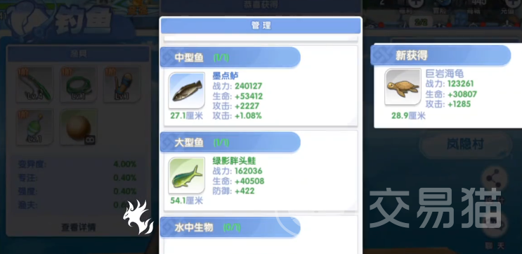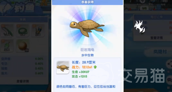 完成每日订单任务,离不开对钓鱼系统的精准掌握。入口位于游戏主界面左下角,点击即可开启垂钓流程。行动前务必核查当前渔具的专注度与变异度数值——它们共同构成收获质量的底层逻辑。若开局即斩获巨岩海龟,不妨截图留存,这既是实力的体现,也是策略优化的阶段性验证。
