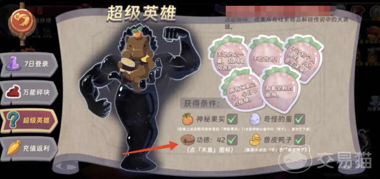 汉克旅店中如何解锁超级英雄?在这款融合冒险与解谜元素的手游里,超级英雄并非初始即得,而是需通过特定条件逐步激活。其中,“天才水豚”作为高人气限定角色,凭借其出色的属性加成与多段位移 范围控制的技能组合,显著提升关卡通关效率。要成功召唤该角色,玩家必须集齐四类关键道具——神秘的果实、奇怪的蛋、功德木鱼、兽皮鸭子。以下为各道具获取路径详解。